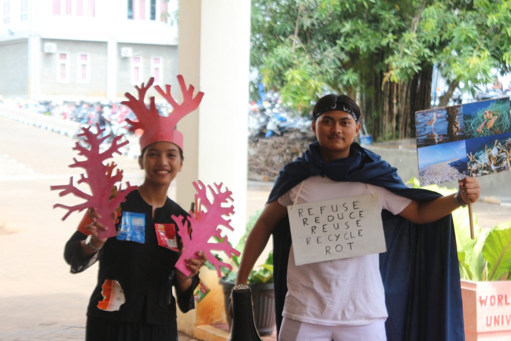 Pada aksi kampus dan aksi CFD, kami memiliki maskot yang mengangkat tema kami yaitu ‘Jera’ dan Jerry. Jera merupakan maskot coral branching dengan gaun hitam, hiasan mahkota karang serta aksesoris karang pada lengan dan tangan yang terjerat sampah. Kemudian, ‘Jerry’ merupakan maskot pahlawan dengan pakaian putih, ikat kepala bertuliskan “Zero waste, zero worry”, jubah berwarna biru gelap dengan simbol 5R yang merupakan prinsip dari zero waste serta penjelasan mengenai 5R yang dikalungkan di leher. Selain itu, ‘Jerry’ juga membawa foto yang menampilkan kondisi isu sampah di laut dan membawa botol plastik untuk menggambarkan sebab dari barang tersebut. ‘Jerry’ datang sebagai pahlawan untuk menyelamatkan Jera, karang yang terjerat sampah untuk mengingatkan kepada masyarakat betapa pengaruhnya sampah bagi ekosistem terumbu karang.
