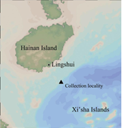 Spesies ini ditemukan di Laut Cina Selatan, tepatnya di perairan antara Pulau Hainan dan Kepulauan Xisha. Habitatnya berada di laut dalam dengan kisaran kedalaman antara 150 hingga 300 meter. Lingkungan ini tergolong dalam zona yang sulit dijangkau dan jarang dieksplorasi oleh nelayan biasa, sehingga keberadaan ikan ini sebelumnya luput dari perhatian ilmuwan. Habitat dasarnya berupa perairan berlumpur dan berpasir yang menjadi tempat mencari makan sekaligus tempat hidup spesies ini.